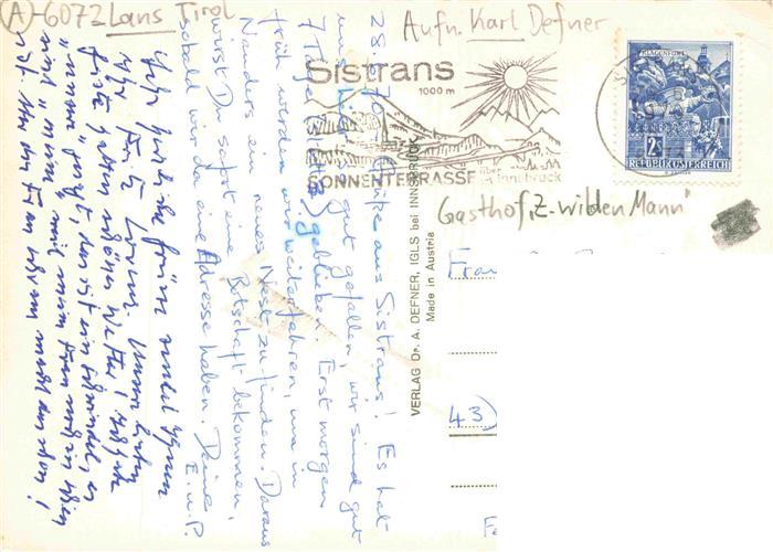 73972064 alte Postkarte Lans Tirol AT Gasthof zum Wilden Mann postalisch gelaufen Erhaltung siehe scans [FriedD77] KatCode: 11390332070325