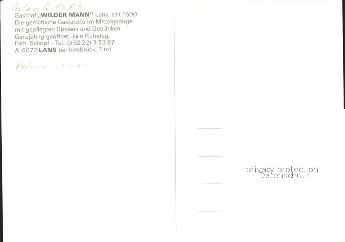 72290160 Lans Tirol Gasthof Wilder Mann postalisch nicht gelaufen Erhaltung siehe scans KatCode: 11390332070325