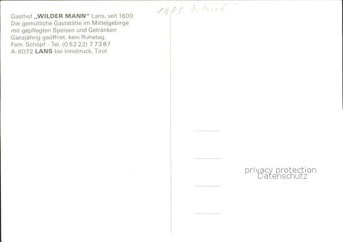 72290875 Lans Tirol Gasthof Wilder Mann postalisch nicht gelaufen Erhaltung siehe scans KatCode: 11390332070325