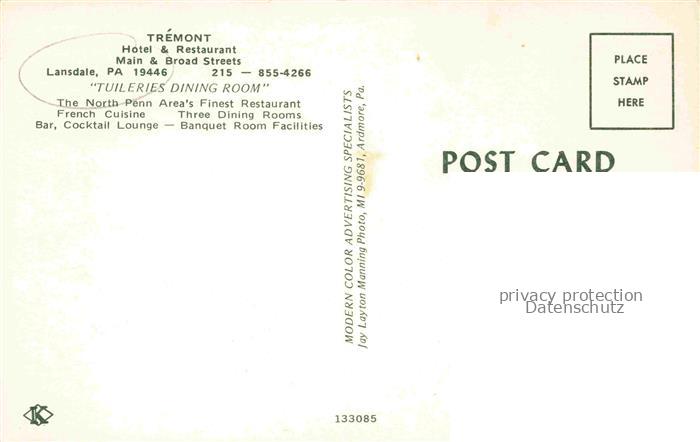74043309 Lansdale Pennsylvania-USA Hotel Restaurant Trémont postalisch nicht gelaufen Erhaltung siehe scans [FriedD77] KatCode: 14140410000000
