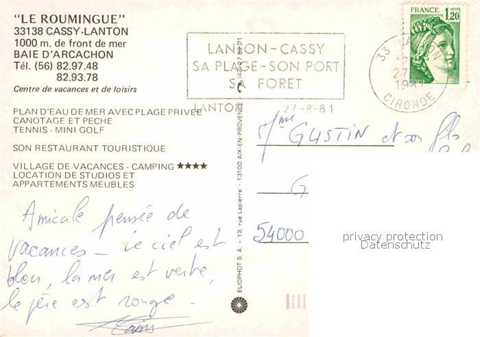 12864050 carte postale Lanton Le Roumingue Baie d Arcachon postalisch gelaufen Erhaltung siehe scans [WerneD78] KatCode: 11170033633229