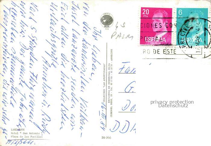 74156149 old postcard Lanzarote Kanarische Inseln ES Hotel San Antonio Playa de los Pocillos Piscina postalisch gelaufen Erhaltung siehe scans [FriedD77] KatCode: 11510