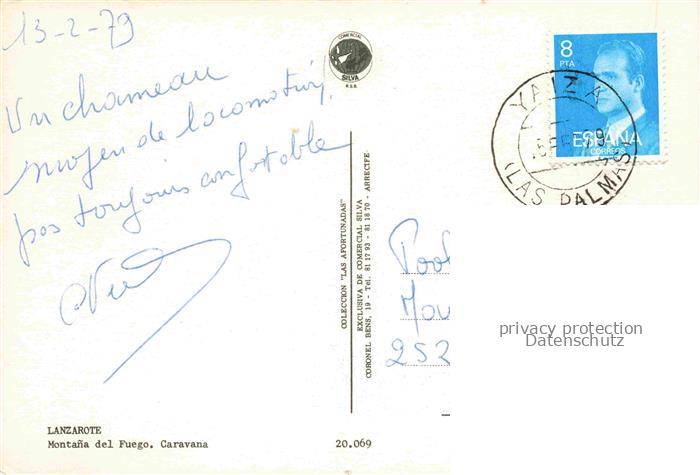 74034302 old postcard Lanzarote Kanarische Inseln ES Montana del Fuego Caravana postalisch gelaufen Erhaltung siehe scans [FriedD77] KatCode: 11510