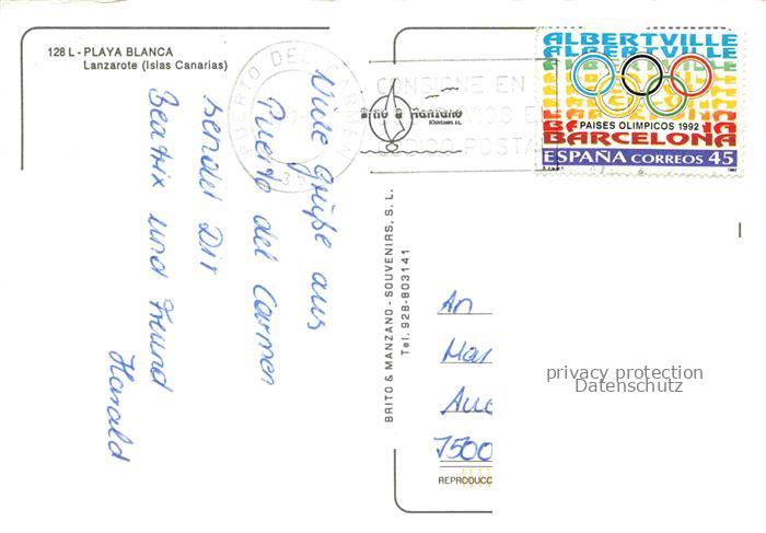 74010384 old postcard Lanzarote Kanarische Inseln ES Playa Blanca postalisch gelaufen Erhaltung siehe scans [WerneD78] KatCode: 11510