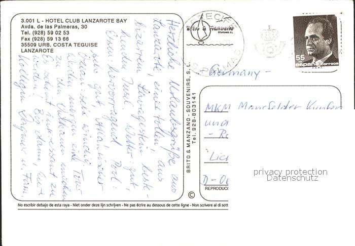 old postcard Lanzarote Kanarische Inseln Hotel Club Lanzarote Bay postalisch gelaufen Erhaltung siehe scans