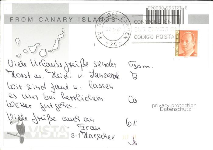 old postcard Lanzarote Kanarische Inseln Hotel Fariones Playa Pools postalisch gelaufen Erhaltung siehe scans