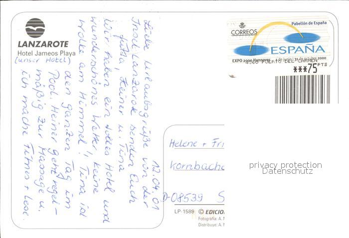 old postcard Lanzarote Kanarische Inseln Hotel Jameos Playa postalisch gelaufen Erhaltung siehe scans
