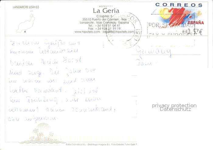 old postcard Lanzarote Kanarische Inseln Hotel La Geria postalisch gelaufen Erhaltung siehe scans