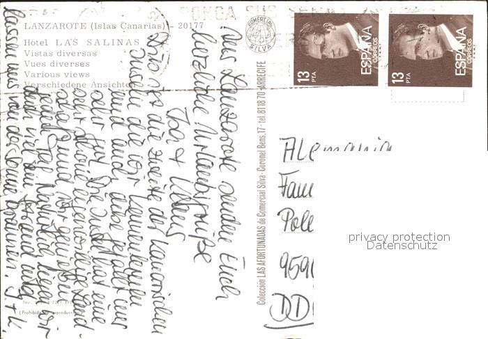 old postcard Lanzarote Kanarische Inseln Hotel Las Salinas postalisch gelaufen Erhaltung siehe scans