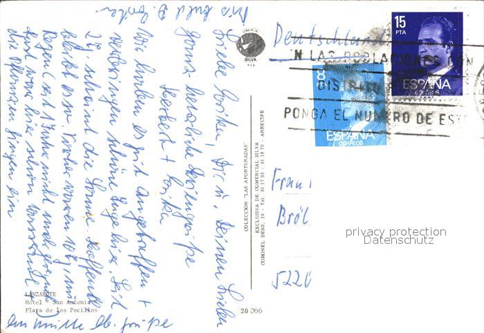 old postcard Lanzarote Kanarische Inseln Hotel San Antonio postalisch gelaufen Erhaltung siehe scans