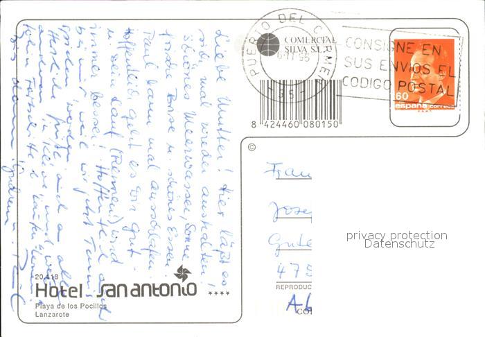 old postcard Lanzarote Kanarische Inseln Hotel San Antonio Playa de los Pocillos postalisch gelaufen Erhaltung siehe scans