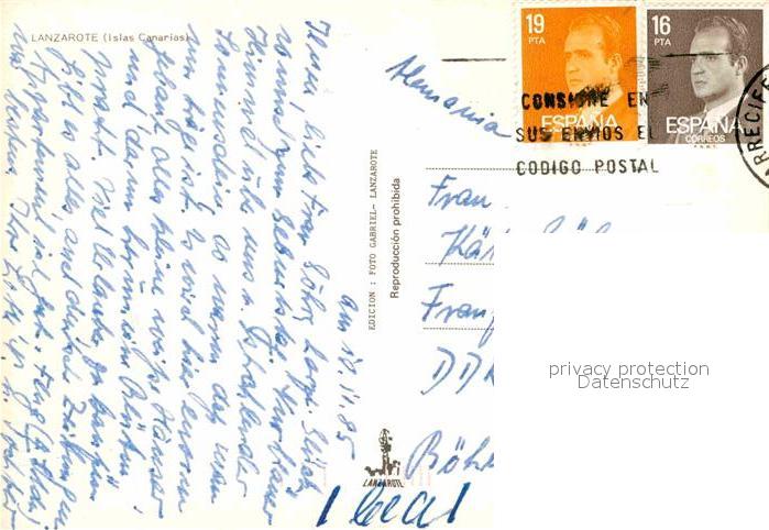 old postcard Lanzarote Kanarische Inseln Inselpanorama postalisch gelaufen Erhaltung siehe scans [LiesaD40]