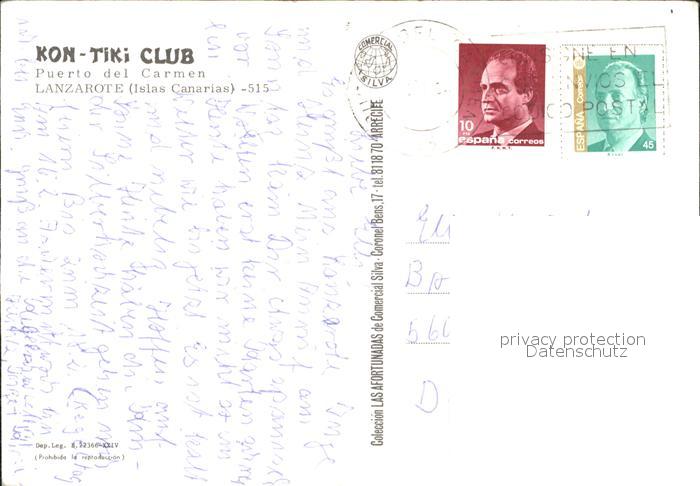 old postcard Lanzarote Kanarische Inseln Kon-Tiki-Club Puerto del Carmen postalisch gelaufen Erhaltung siehe scans