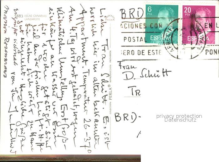 old postcard Lanzarote Kanarische Inseln Landkarte postalisch gelaufen Erhaltung siehe scans