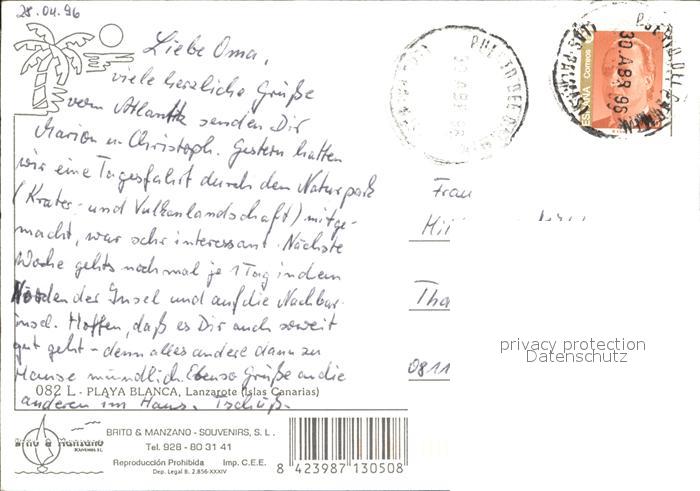 old postcard Lanzarote Kanarische Inseln Uferpromenade postalisch gelaufen Erhaltung siehe scans