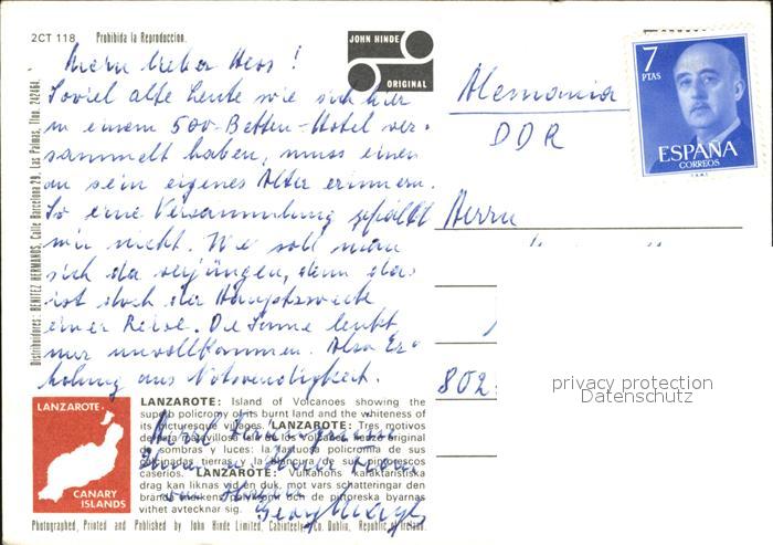 Lanzarote Kanarische Inseln Vulkaninsel Kamelreiten Windmuehle Kirche postalisch nicht gelaufen Erhaltung siehe scans