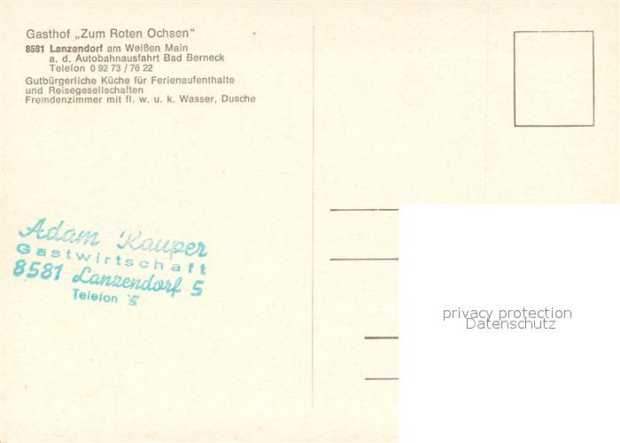 73717458 Lanzendorf Oberfranken Gasthof Zum Roten Ochsen Partie am Weissen Main Gaststube postalisch nicht gelaufen Erhaltung siehe scans [WerneD78] KatCode: 11110009477121