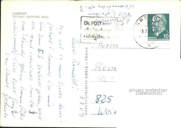 old postcard Lanzhot Základni devitiletá skola postalisch gelaufen Erhaltung siehe scans