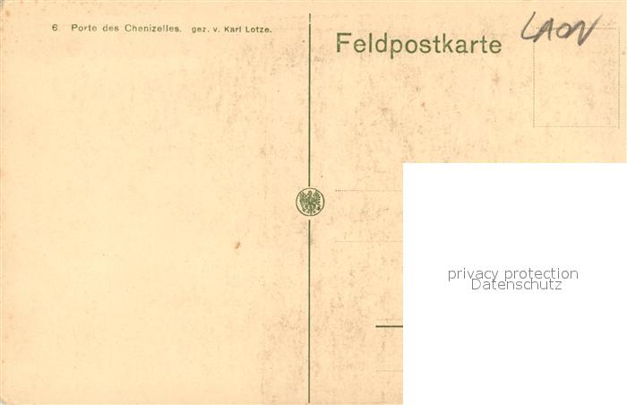 13503169 Laon Aisne Porte des Chenizelles Zeichnung Karl Lotze postalisch nicht gelaufen Erhaltung siehe scans [KathaD81] KatCode: 11170002202408