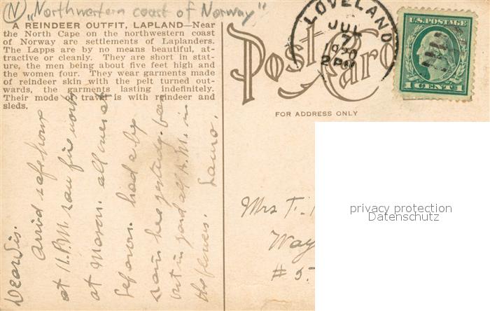 13698364 Lapland Lappland A Reindeer Outfit postalisch gelaufen Erhaltung siehe scans [WerneD78] old postcard Wern Katcode 11160