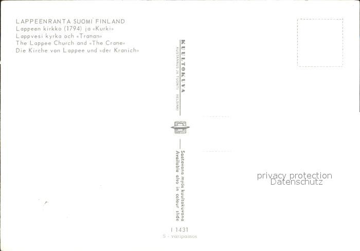 Lappeenranta Kirche mit Kranichskulptur Brunnen postalisch nicht gelaufen Erhaltung siehe scans