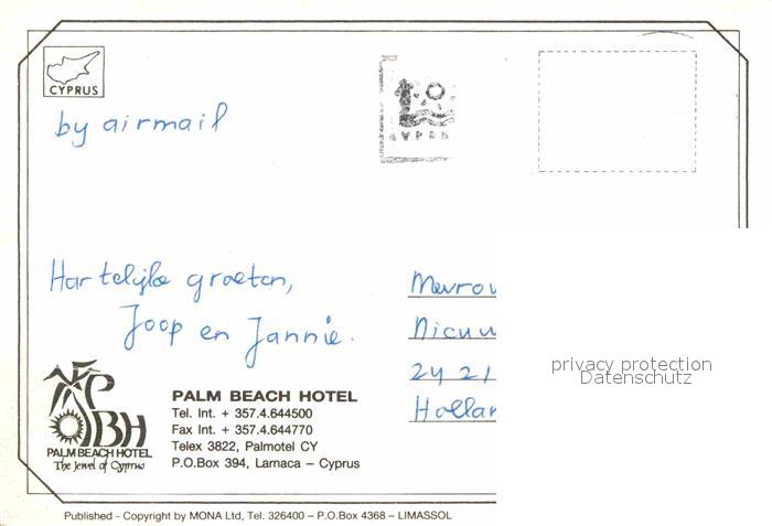 Larnaca Palm Beach Hotel Strand Tennis Schwimmbad postalisch nicht gelaufen Erhaltung siehe scans [LiesaD40]