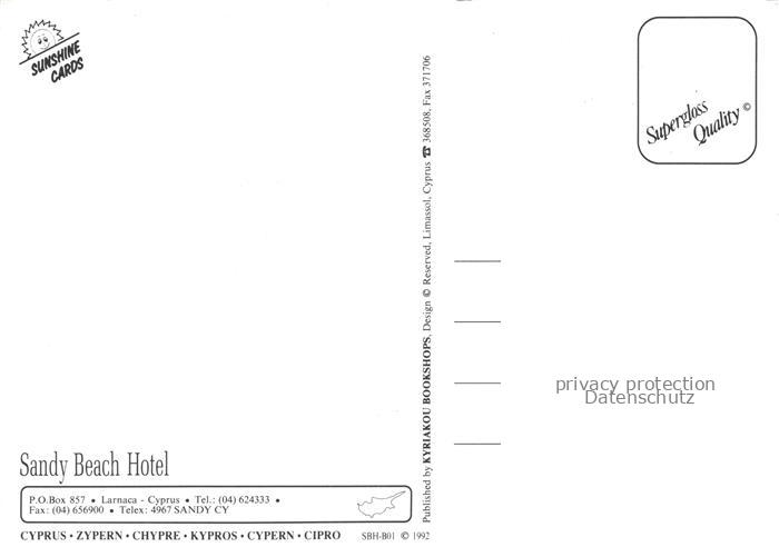 74005691 Larnaca Sandy Beach Hotel Gastraeume Pool Appartement Grill Tafel postalisch nicht gelaufen Erhaltung siehe scans [WerneD78] KatCode: 13190