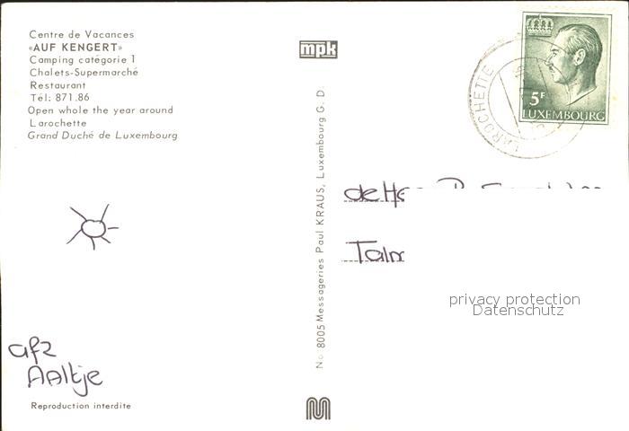 alte Postkarte Larochette Luxembourg Campinplatz Auf Kengert postalisch gelaufen Erhaltung siehe scans