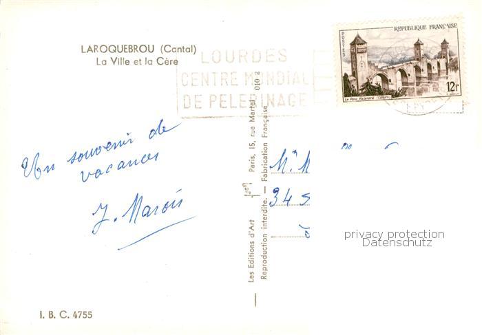 13849639 Laroquebrou 15 Cantal La Ville et la Cere postalisch gelaufen Erhaltung siehe scans [WerneD78] carte postale Wern Katcode 11170015115094
