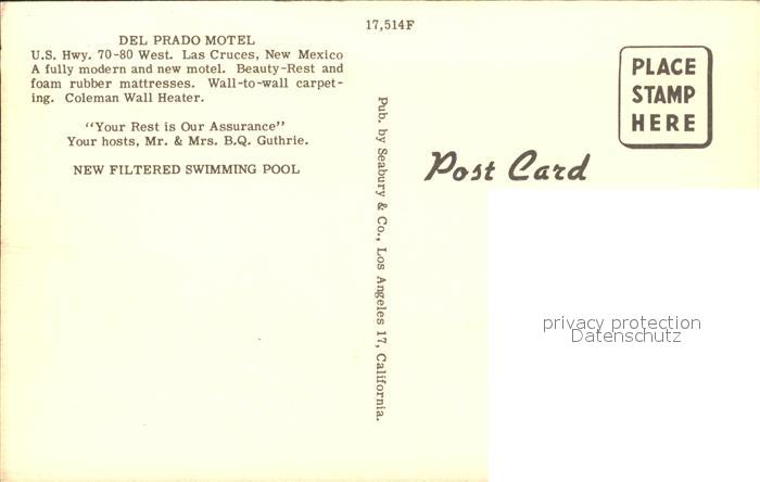 11688328 Las Cruces New Mexico Del Prado Motel Swimming Pool postalisch nicht gelaufen Erhaltung siehe scans KatCode: 14140330000000