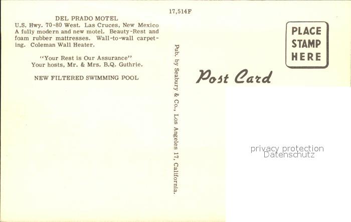 11688330 Las Cruces New Mexico Del Prado Motel Swimming Pool postalisch nicht gelaufen Erhaltung siehe scans KatCode: 14140330000000