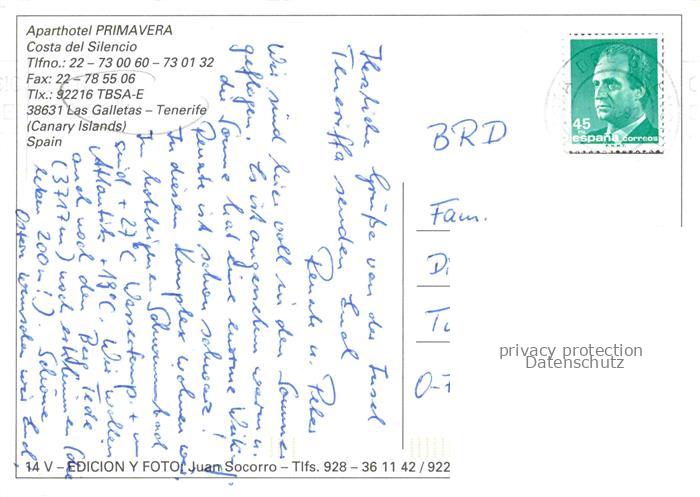 74039760 old postcard Las Galletas Tenerife Islas Canarias ES Aparthotel Primavera Costa del Silencio Swimming Pool el Teide Volcano postalisch gelaufen Erhaltung siehe scans [FriedD77] KatCode: 11510