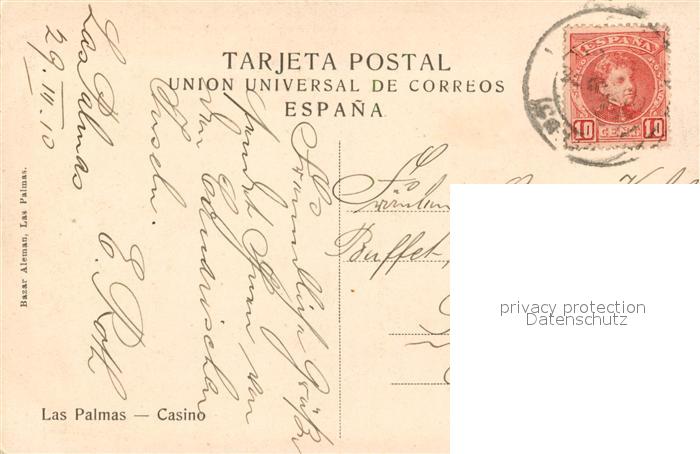 13341769 Las Palmas Gran Canaria Casino postalisch gelaufen Erhaltung siehe scans [WerneD78] old postcard Wern Katcode 11510