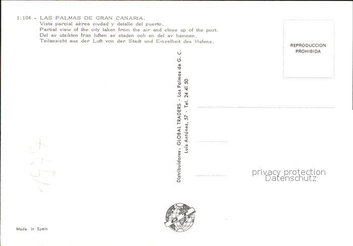Las Palmas Gran Canaria Fliegeraufnahme mit Hafen postalisch nicht gelaufen Erhaltung siehe scans [LiesaD40]