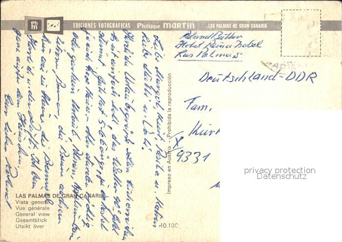 old postcard Las Palmas Gran Canaria Gesamtansicht postalisch gelaufen Erhaltung siehe scans