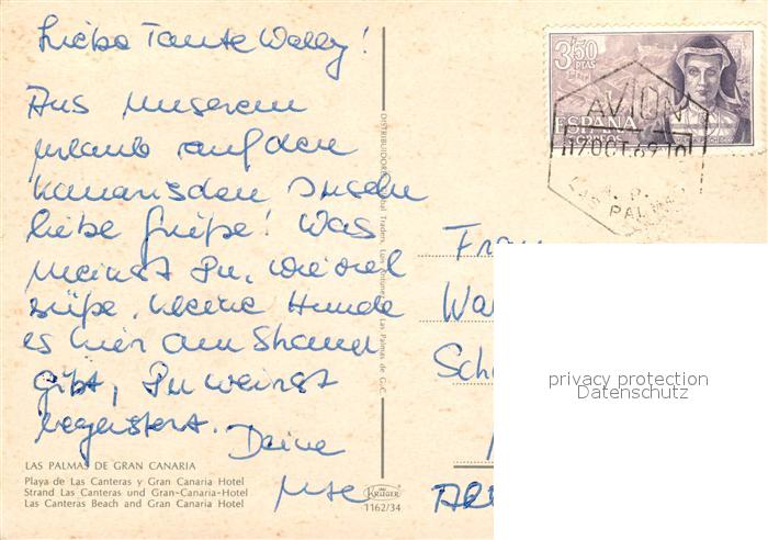 13342569 Las Palmas Gran Canaria Gran Canaria Hotel Strand postalisch gelaufen Erhaltung siehe scans [WerneD78] old postcard Wern Katcode 11510