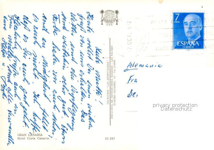 old postcard Las Palmas Gran Canaria Hotel Costa Canaria Piscina postalisch gelaufen Erhaltung siehe scans [FriedD77]