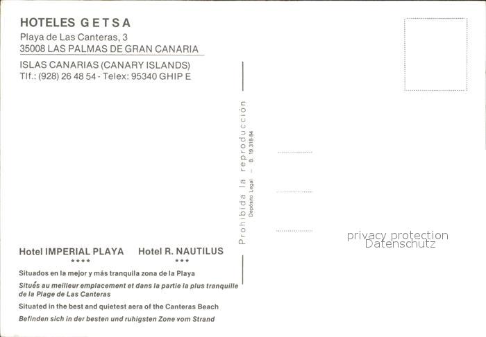 Las Palmas Gran Canaria Hotel Getsa postalisch nicht gelaufen Erhaltung siehe scans