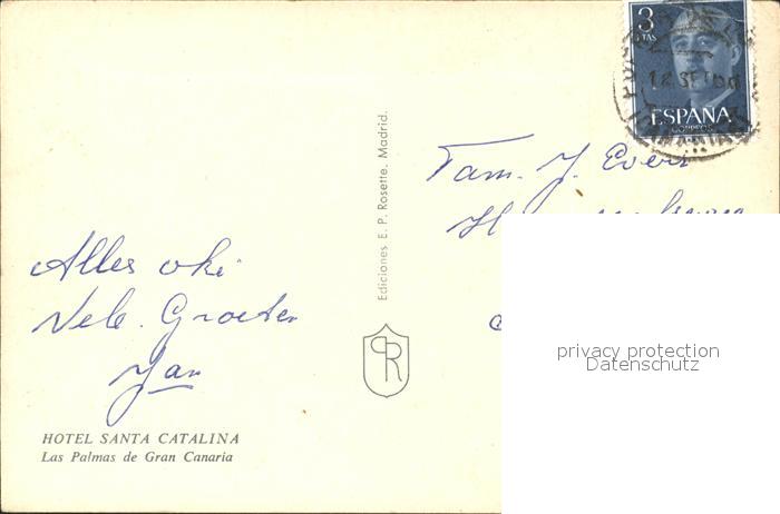 old postcard Las Palmas Gran Canaria Hotel Santa Catalina postalisch gelaufen Erhaltung siehe scans