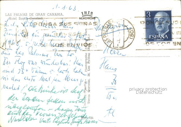 old postcard Las Palmas Gran Canaria Hotel Santa Catalina postalisch gelaufen Erhaltung siehe scans