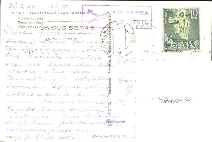 old postcard Las Palmas Gran Canaria Pueblo Canario postalisch gelaufen Erhaltung siehe scans [LiesaD40]