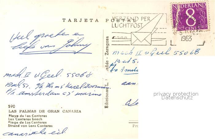 old postcard Las Palmas Gran Canaria Strand von Lans Canteras postalisch gelaufen Erhaltung siehe scans [WerneD78]