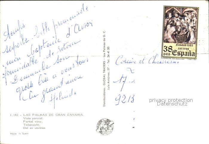 old postcard Las Palmas Gran Canaria vista parcial postalisch gelaufen Erhaltung siehe scans