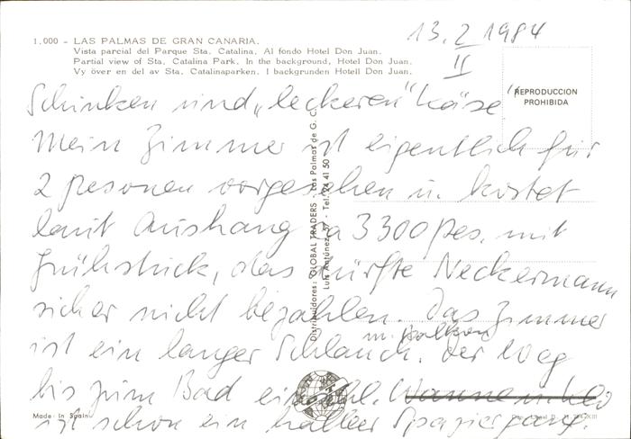 Las Palmas Gran Canaria Vista parcial del Parque Sta. Catalina Hotel Don Juan postalisch nicht gelaufen Erhaltung siehe scans