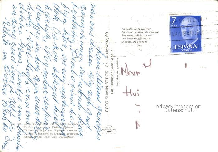 old postcard Las Palmas Gran Canaria Volkstanz postalisch gelaufen Erhaltung siehe scans
