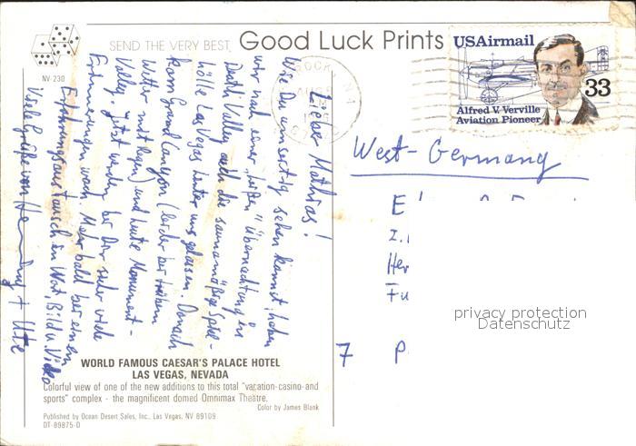 72071323 old postcard Las Vegas Nevada Caesar’s Palace Hotel postalisch gelaufen Erhaltung siehe scans KatCode: 14140300000000