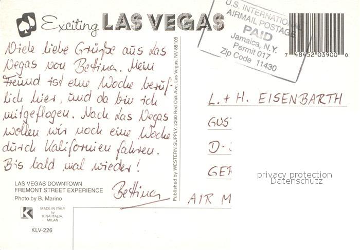 72955829 old postcard Las Vegas Nevada Downtown Fremont Street Experience Club Casino Hotel at night postalisch gelaufen Erhaltung siehe scans [FriedD77] KatCode: 14140300000000