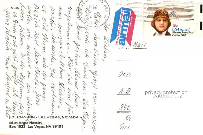 72662717 old postcard Las Vegas Nevada Hollyday Inn postalisch gelaufen Erhaltung siehe scans [AndreD76] KatCode: 14140300000000