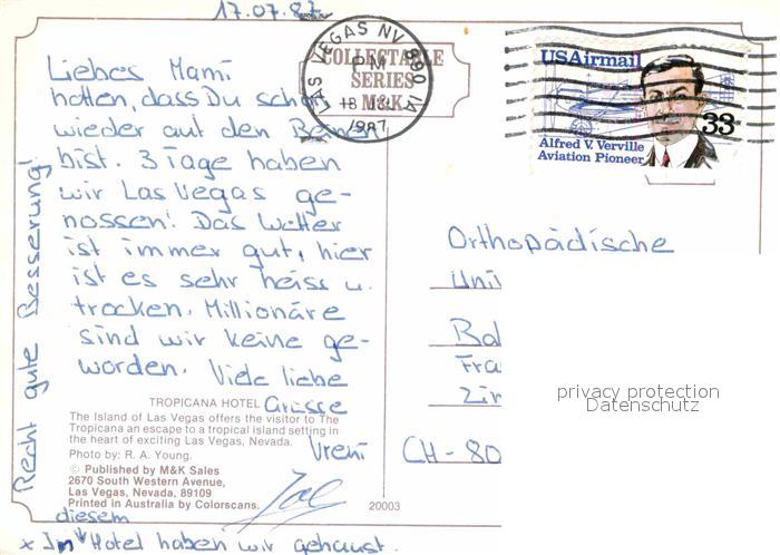 72715851 old postcard Las Vegas Nevada Island Schwimmbad postalisch gelaufen Erhaltung siehe scans [KathaD79] KatCode: 14140300000000