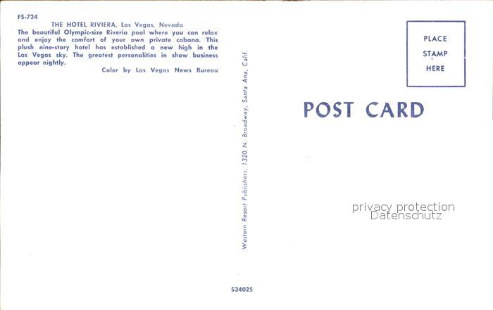 72486894 Las Vegas Nevada The Hotel Riviera postalisch nicht gelaufen Erhaltung siehe scans KatCode: 14140300000000